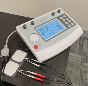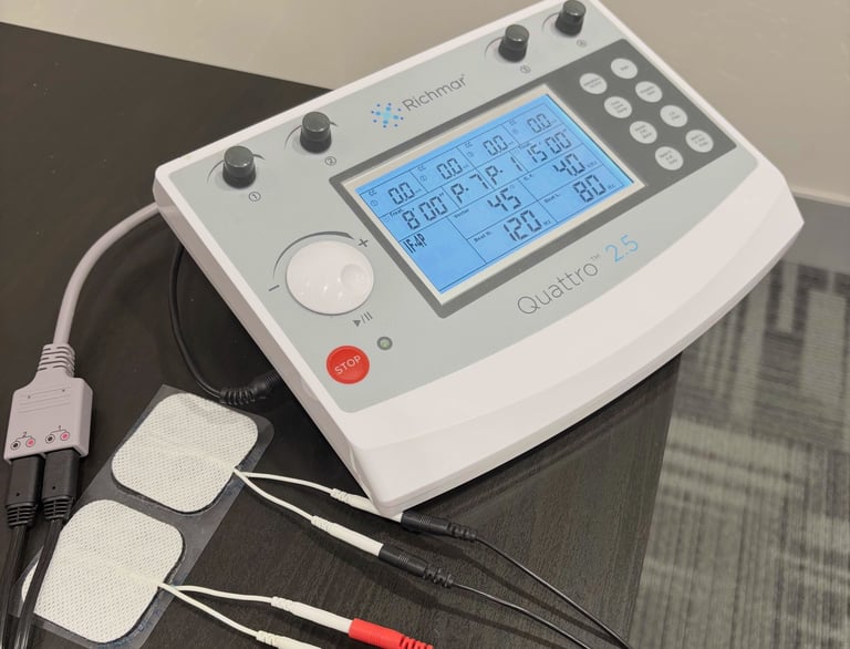 Low-level electrical impulses that help relax muscle spasms, increase blood flow, and provide immediate pain relief.